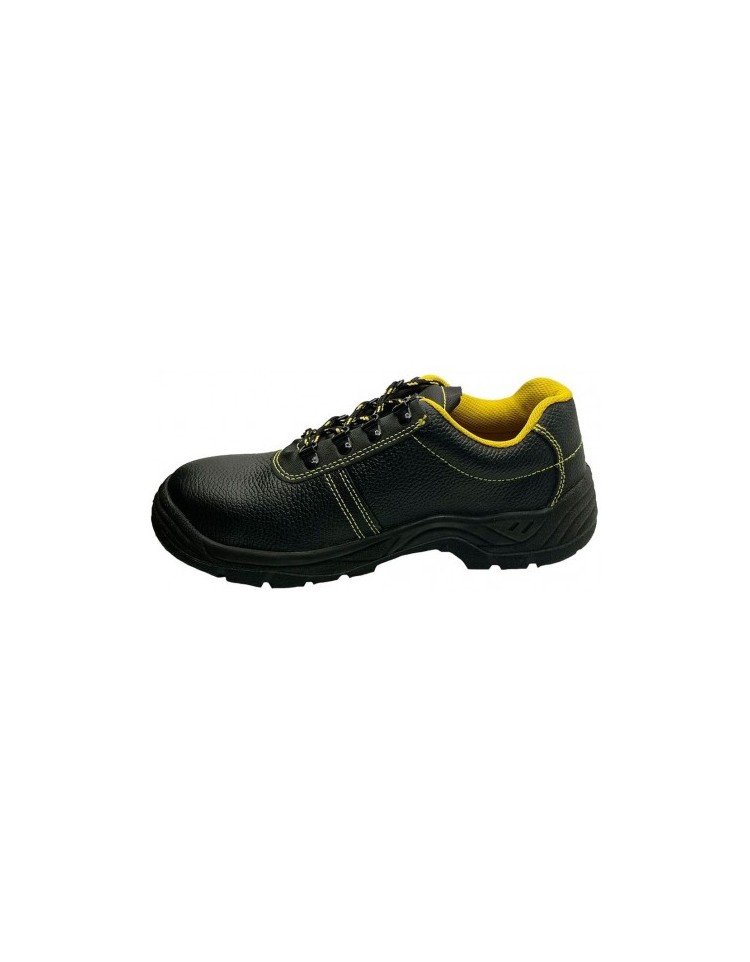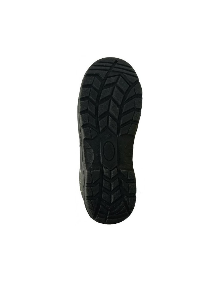 Calzatura di sicurezza S3 realizzata in pelle goffrata nera.